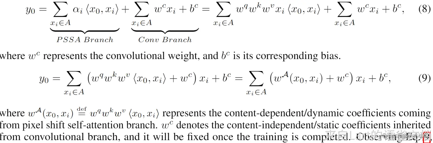 这里的运算中的相关计算,由于使用空间偏移来模拟领域与领域的关系建模,所以上式展现的局部运算形式中只体现了偏移后的运算。