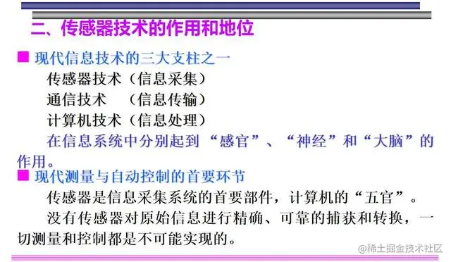 传感器技术作为信息科学的一个重要分支,与计算机技术、自动控制技术和通信技术等一起构成了信息技术的完整学科。
