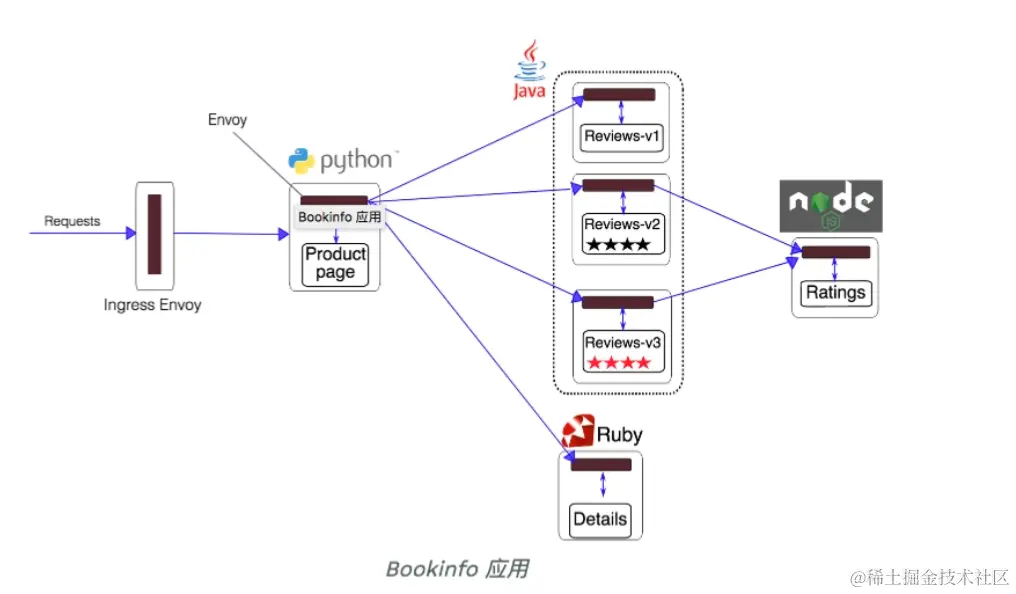 Istio提供了示例程序,我们就用示例程序之一bookinfo来做应用部署
