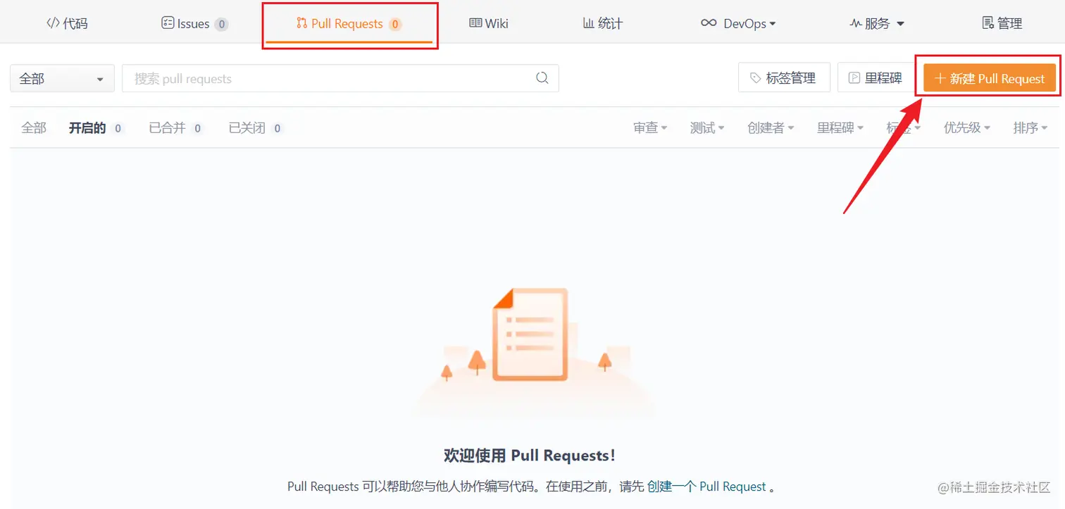 3. 在 git 管理平台 (github 码云等) 新建 PullRequest