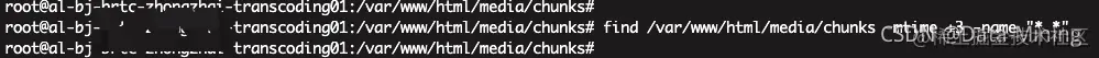 今天遇到一个问题,具体情况如下:目录 /var/www/html/media/chunks/ 中存在很多临时文件,需要进行删除,但是手动删除的话,会非常的慢,首先,我们查看一下3天前都有哪些文件。