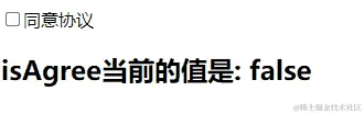 <h2>isAgree当前的值是: {{isAgree}}</h2>