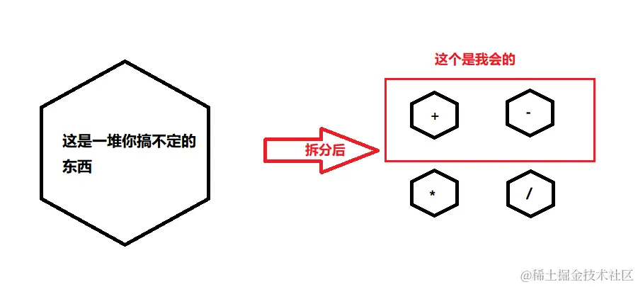 - 如果将一个复杂的问题,拆分成很多个可以处理的小问题,再将其放在整体当中,你会发现大的问题也会迎刃而解。