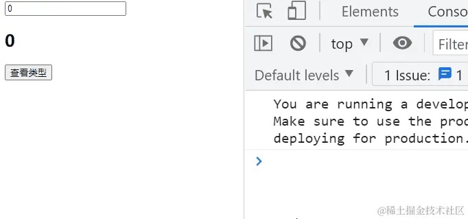 - 当我们第一次点击查看类型按钮,会显示类型是 number,这个没有问题,因为我们本身定义属性的值是number。但是我们在输入框输入新的数字后,再次点击按钮查看类型,显示的结果是 messageType: string。