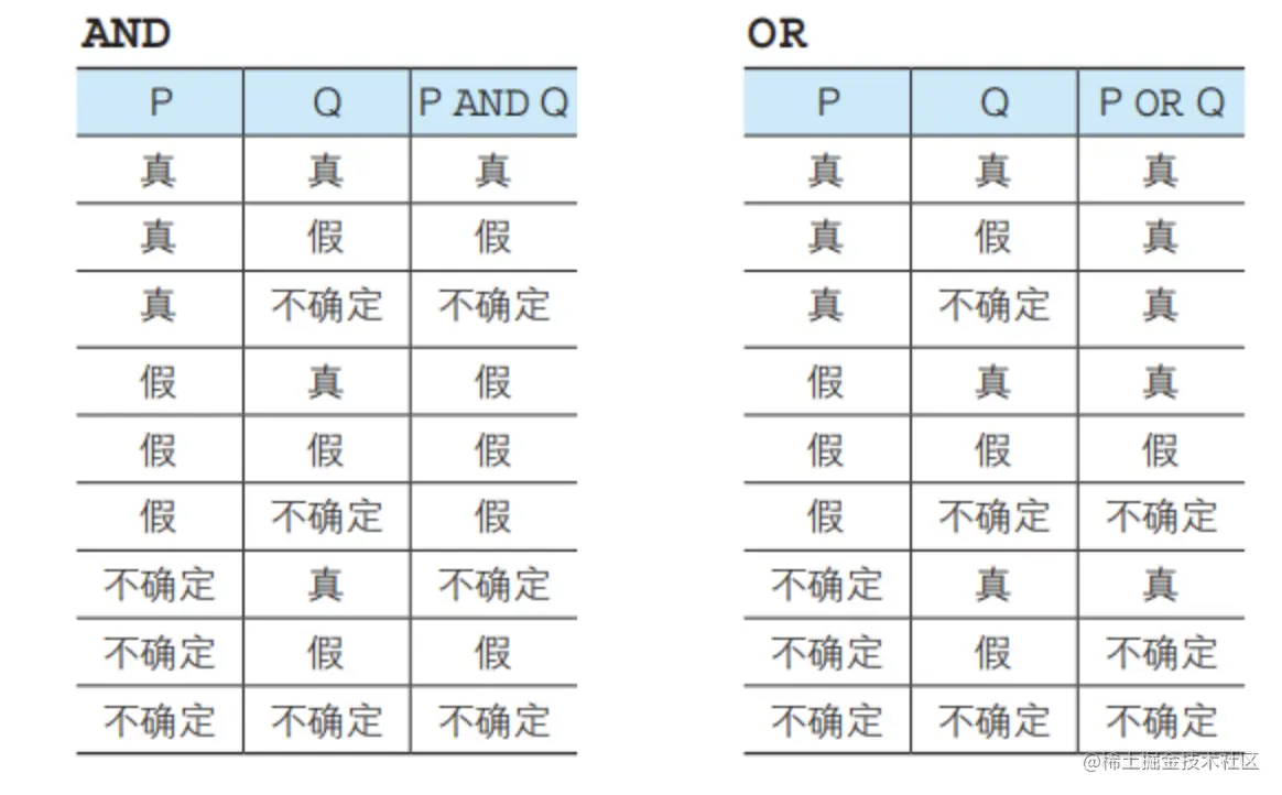sql语句除了真和假,还有一个不确定(unknown)值。属于三值逻辑。