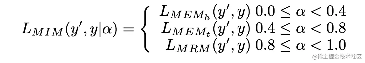 Loss Designing:在MEM和MRM任务中构造样本的策略是互斥的,因此同一输入模型训练的三个样本不能同时预测头部实体和尾部实体的预测。为了保证模型的泛化能力,将MEM和MRM任务合并到MIM (Mask Item model)任务中,并定义损失函数如下
