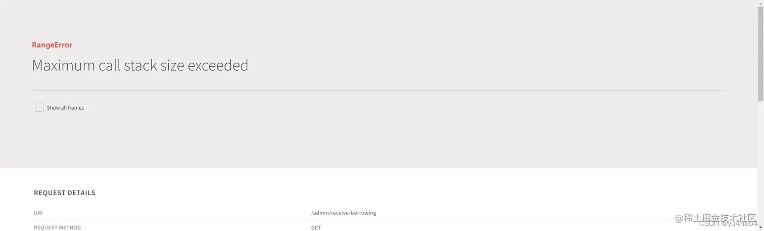 Nuxt 出现 RangeError Maximum call stack size exceeded yu4hao4 2022-02-13 916 阅读1分钟 经过排查发现问题是,components引入的组件配置名称的时候,Component的名字和vue文件的name名字重复,就会出现栈溢出的 error 修改一下compoent的名字或者 vue文件的名字就好