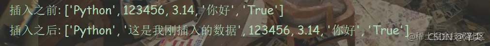 listA.insert(1,"这是我刚插入的数据")