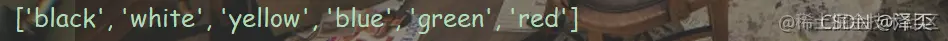 My_list = ['red', 'green', 'blue', 'yellow', 'white', 'black']