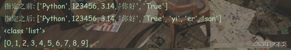 Mylist1 = ['你好', 'Python', 1997, 2000]
