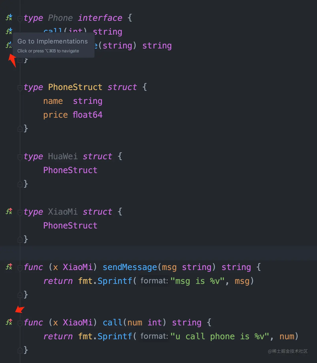 - 可以看到上述代码没有 stuInterface 接口的影子,因为 Go 中接口的实现都是隐式的,只需要实现 PrintAge 方法就实现了 stuInterface 接口