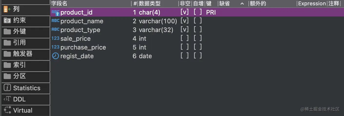 product表的列定义: