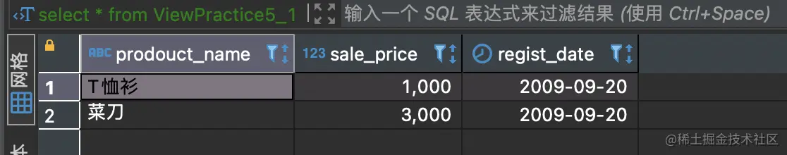 对该视图执行 SELECT 语句的结果如下所示。