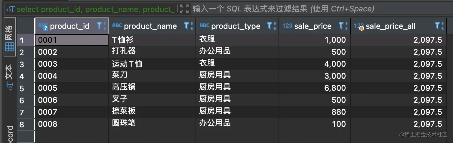 0001 | T恤衫 | 衣服 | 1000 | 2097.5000000000000000