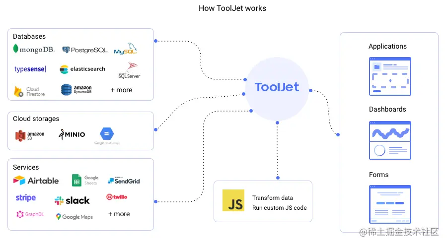 ToolJet 是一个开源的低代码框架,可以快速构建和部署内部工具,而无需工程团队付出太多努力。通过 ToolJet 可以连接数据源,如 PostgreSQL、MongoDB、Elasticsearch 等等。它支持导入 OpenAPI 规范和 OAuth2 授权,以及外部服务,例如:Stripe、Slack、Google Sheets、Airtable。