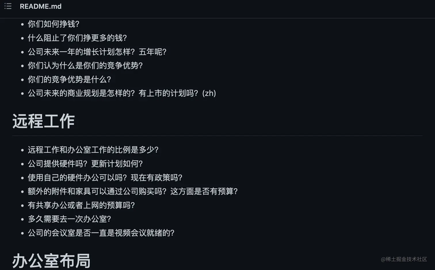 reverse-interview-zh 收录技术面试最后反问面试官的话,面试本是双方的事情,通过这个项目你可以了解下在面试公司的时候有哪些问题是你关注、可以提问的。
