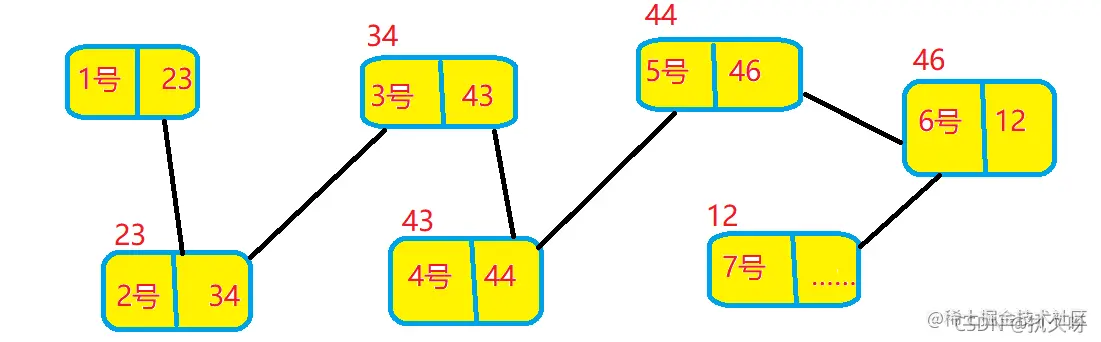 ②链式结构:由存放地址的指向来存储,没有顺序,地址不连续。