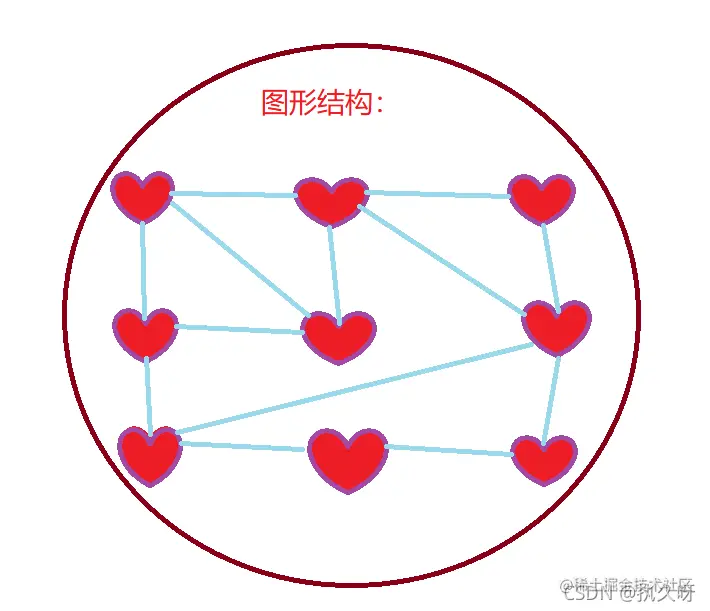 逻辑结构:数据对象之间的关系,各元素之间的关系。