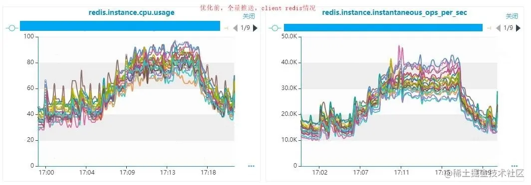 2)消息体还有等待队列都存储在一个集群,推送时都需要操作,导致Redis并发很大,高峰期cpu负载较高,到达90%以上。