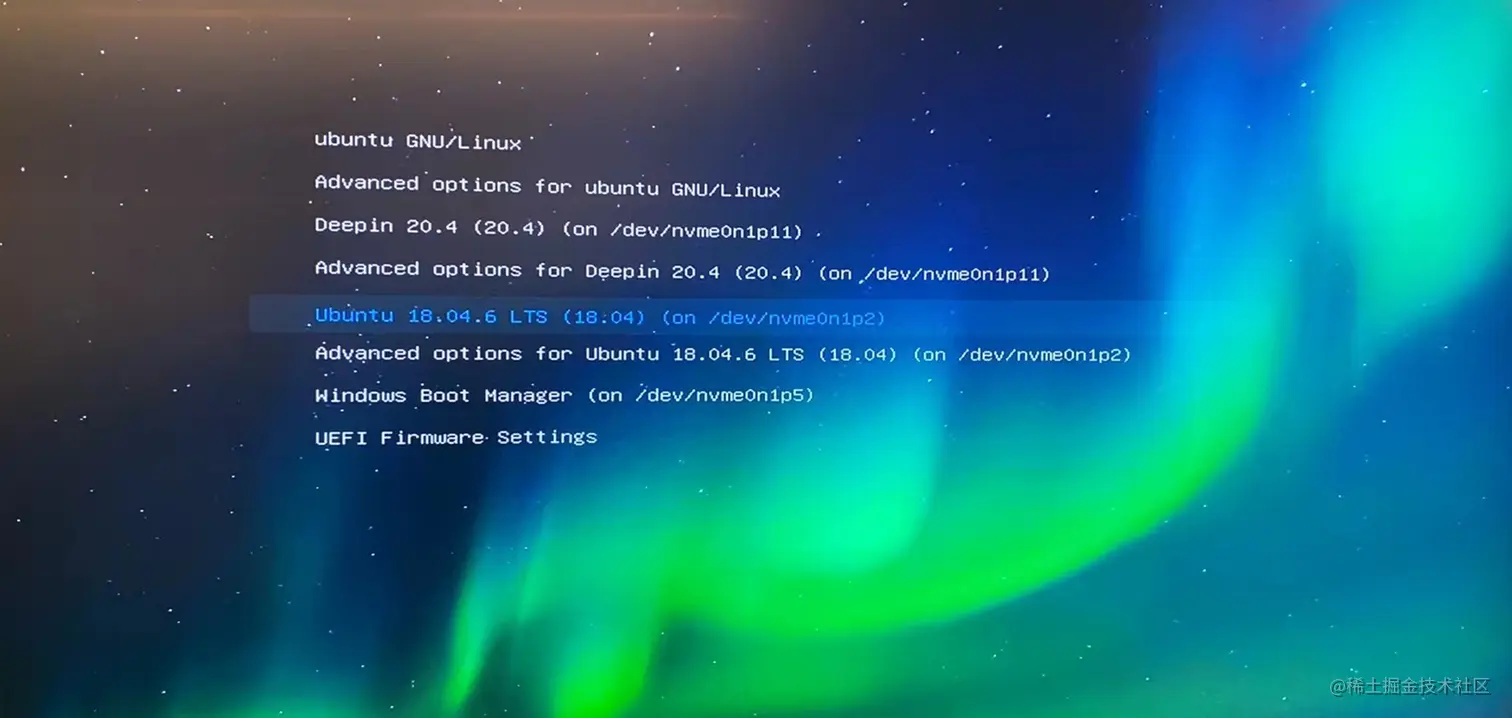 如果你的电脑安装了多个操作系统,会进入默认的 grub启动引导页,选择希望进入的操作系统即可: