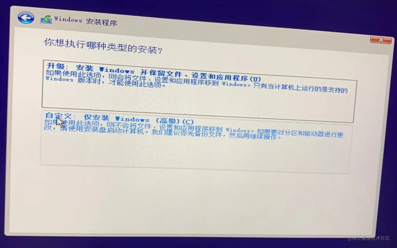 如果你希望不格式化电脑原有的数据,或者希望在同一台电脑安装多个操作系统,请选择自定义方式进行安装: