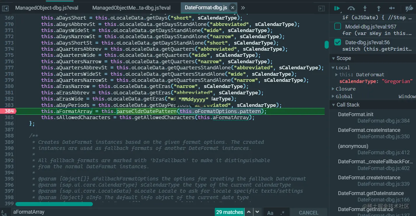 运行时调试:this.oFormatOptions.pattern 的值为 MMddyyyy