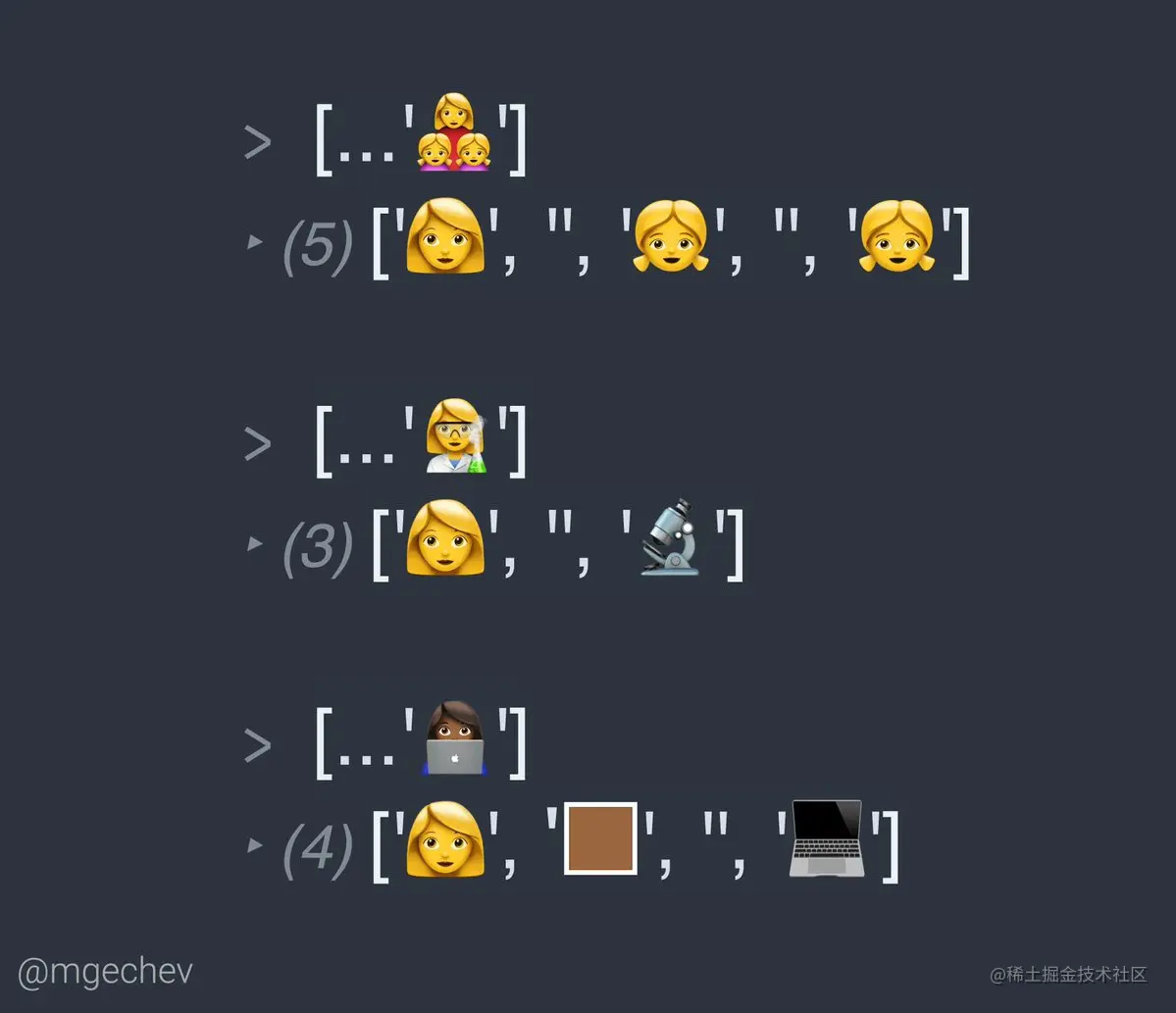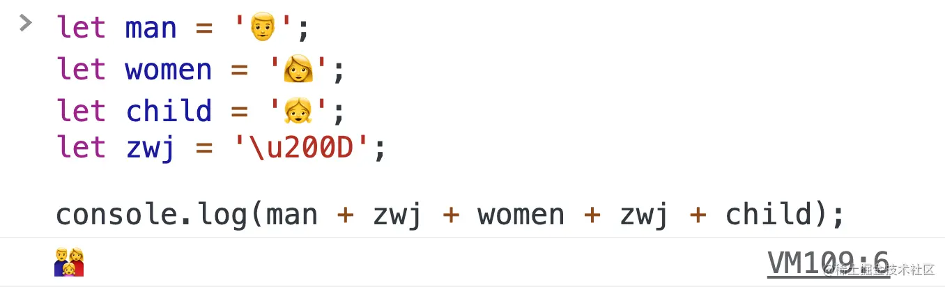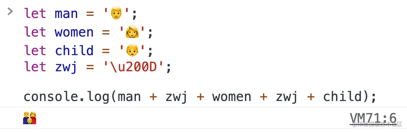 回到我们的一家三口,你会发现,展开后的第1、3项为零宽字符(Zero Width Joiner,简称zwj):