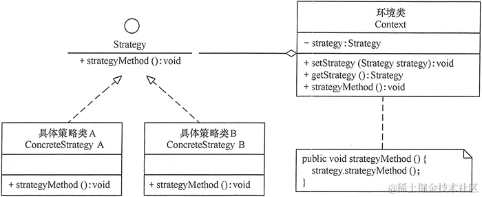 (3)具体策略(ConcreteStrategy)类,包装了相关的算法或者行为。