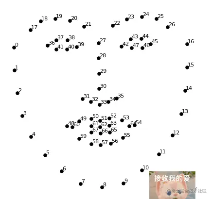 通过37、38、40、41来确定左眼球位置,43、44、48、47来确定右眼球位置。将女友照片按眼球区域缩