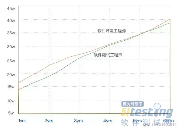 知乎有个话题“软件测试的工资高还是开发者的工资高?”软件测试和软件开发门槛有差异,在职业起步阶段收入也会有一定的差异,这算是行业内公开的秘密。但随着工作年限的增加,经验的逐步积累,软件开发和软件测试的收入基本会持平。