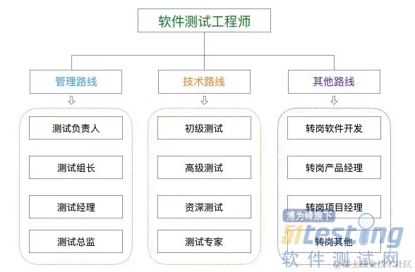 通常情况下,在大的互联网公司,软件测试的发展道路大概有三个方向:管理路线、技术路线、其他路线。 如下图所示,每个方向都有具体的发展路线,但是不管走哪条路线,总是要从测试技术干起,所以今天我们只讨论如何规划自己的测试技术发展道路。