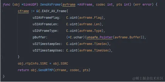 func (obj *SinkUDP) SendAVFrame(avframe *AVFrame, codec int, pts int) (err error) {