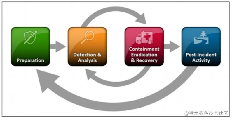 应急响应流程可以参考NIST其中明确了应急响应4个阶段并细分出了6个步骤。
