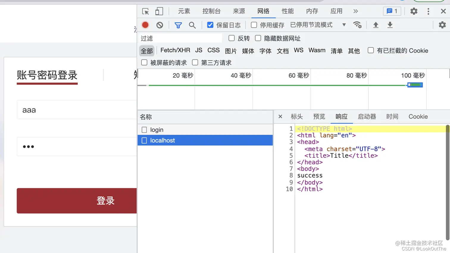 运行项目,再次登录后,ajax正常处理,跳转页面。
