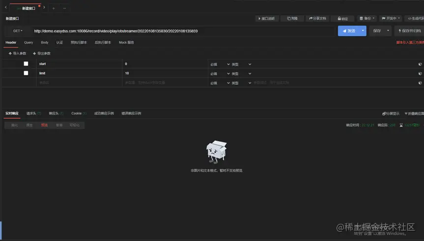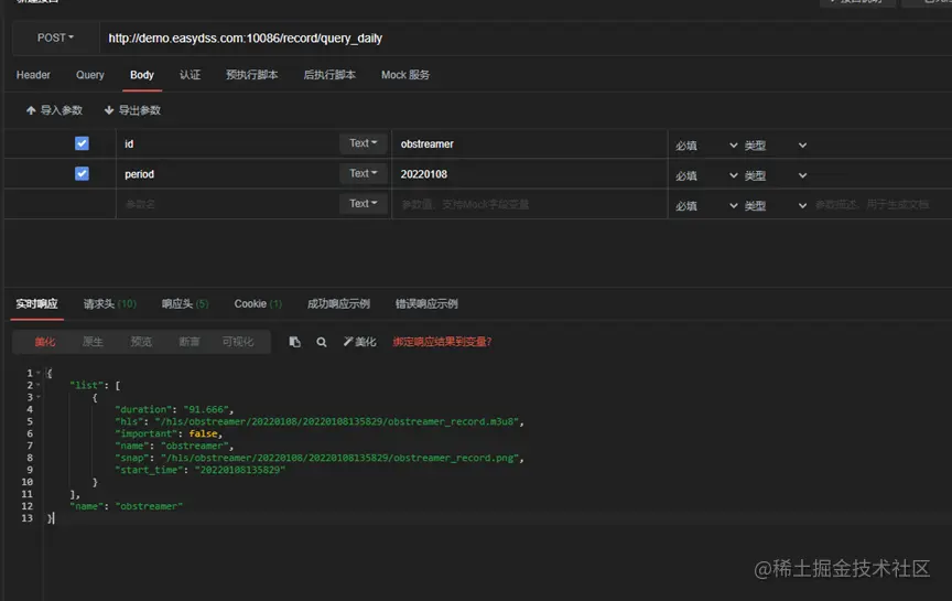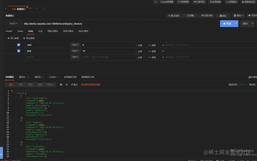 2)接着,开始调用查询有录像设备的接口,注意要用post请求: