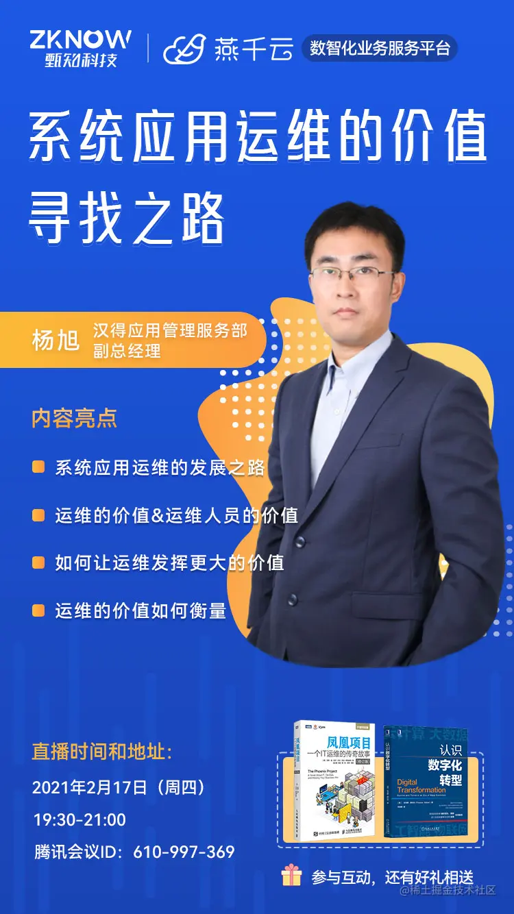 本周四,甄知科技将邀请汉得信息应用管理服务部副总经理杨旭先生分享运维的发展之路,以及运维人在新形势下实现自身价值突破之道。