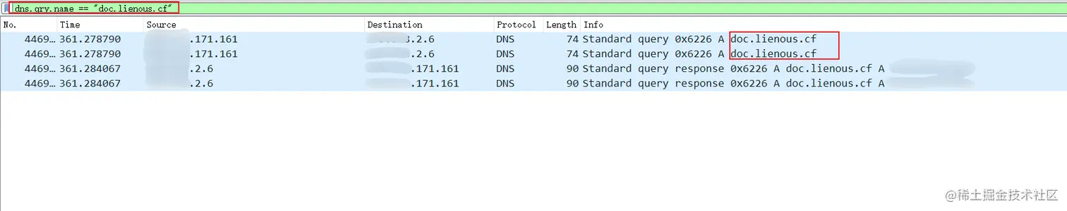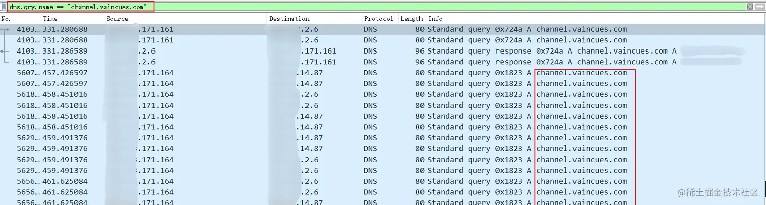 考虑以上,因为上级单位的感知设备是在出口路由器之外的,既然检测到了挖矿病毒,那异常的流量行为肯定过内网核心交换机,来到机房,wireshark接内网核心交换机镜像流量口抓包就没错,通报显示有域名地址,wireshark抓的包过滤DNS,过滤命令
