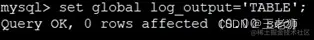 set global log_output='TABLE'; -- 'TABLE,FILE'表示同时输出到表和文件set global