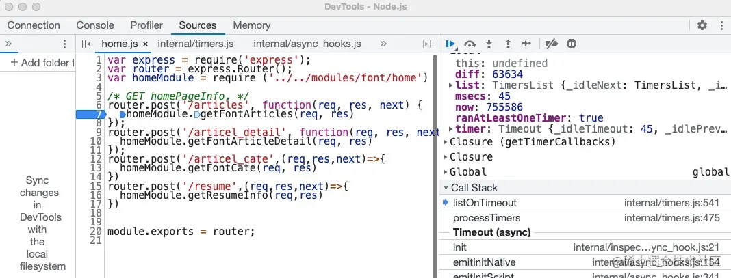 点击【Open dedicated DevTools for Node】Node专用调试工具,即可进行调试。