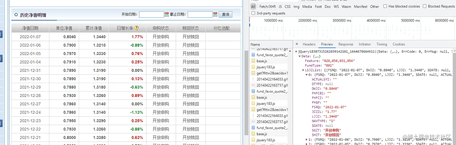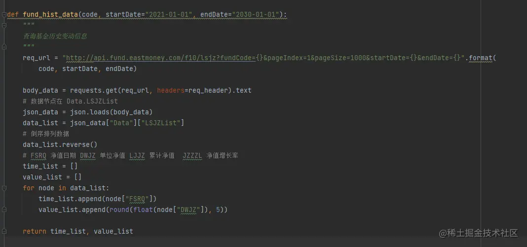 获取基金净值信息代码如下,在获取数据后则需要对净值数据进行转换: