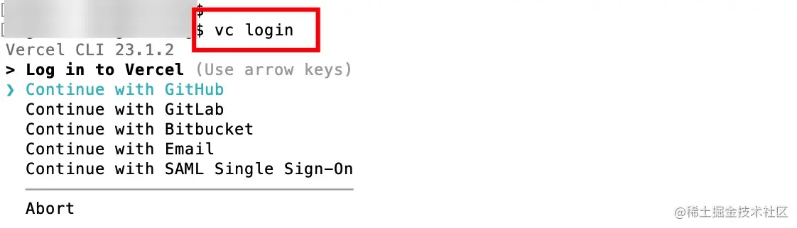 当我们注册好账号之后,需要安装 Vercel 客户端,Vercel 提供了两种安装方式 npm 和 yarn。