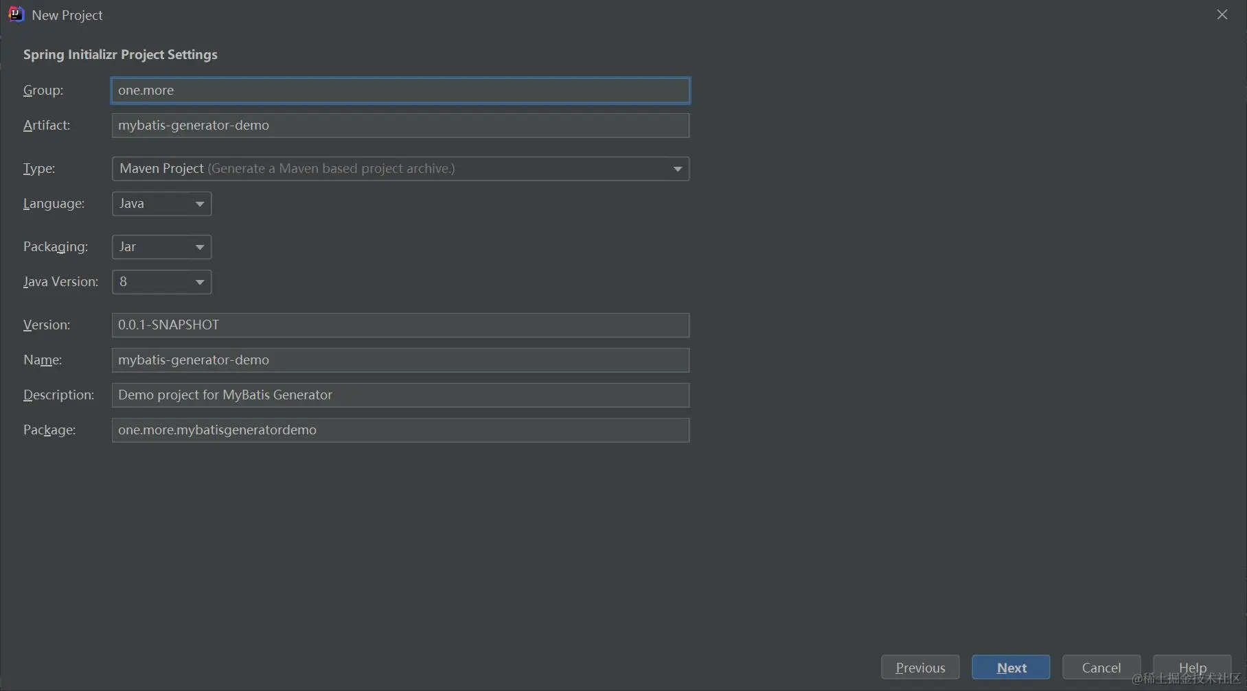 点击Next,输入Group、Artifact等信息,如下图: