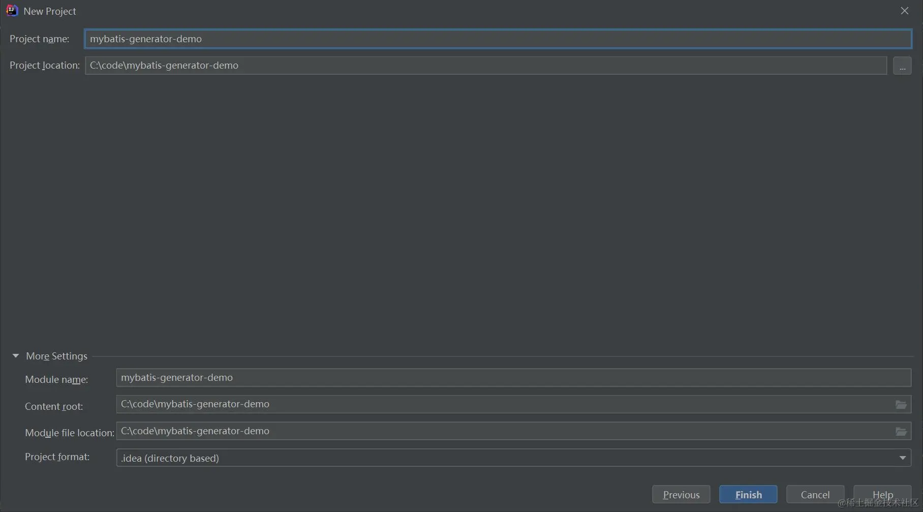 点击Next,输入Project name、Project location等信息,如下图: