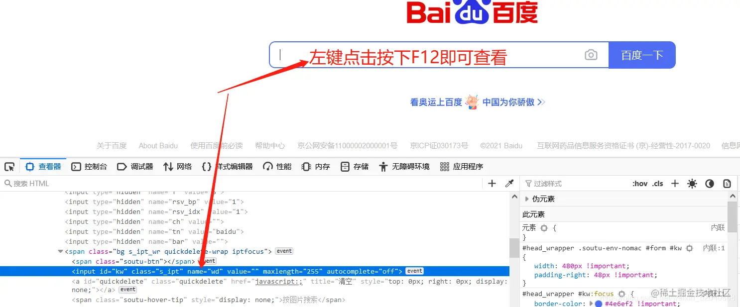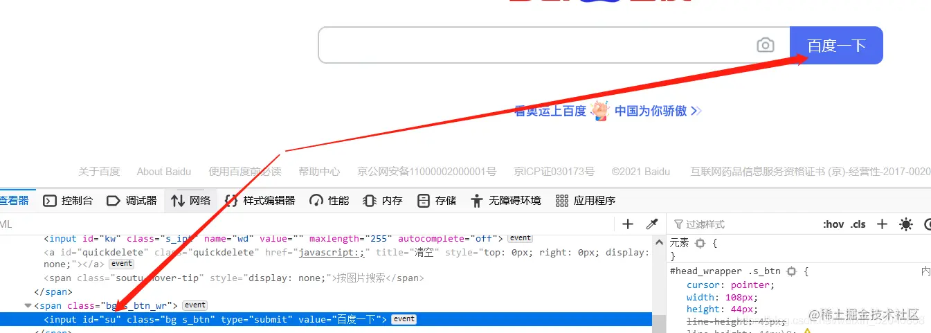 上面我们用百度的例子定位了输入框,那么我们这回来定位搜索按钮并点击它。