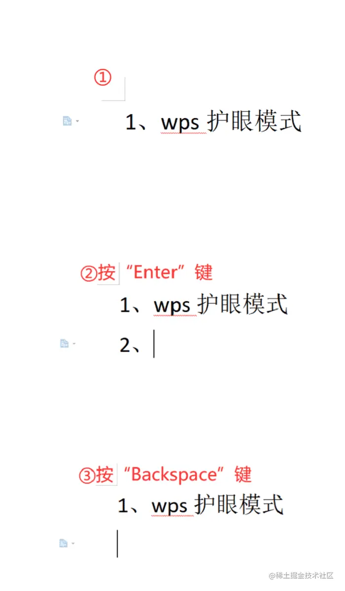 方法二: 按“Enter”,先让编号出现,再按“Backspace”键,即“←”。