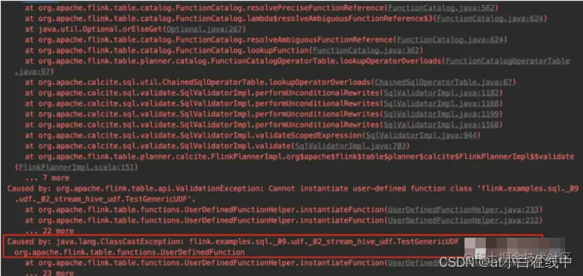 但是在后续 udf 初始化时就报错了。具体错误如下图。直接报错 ClassCastException。