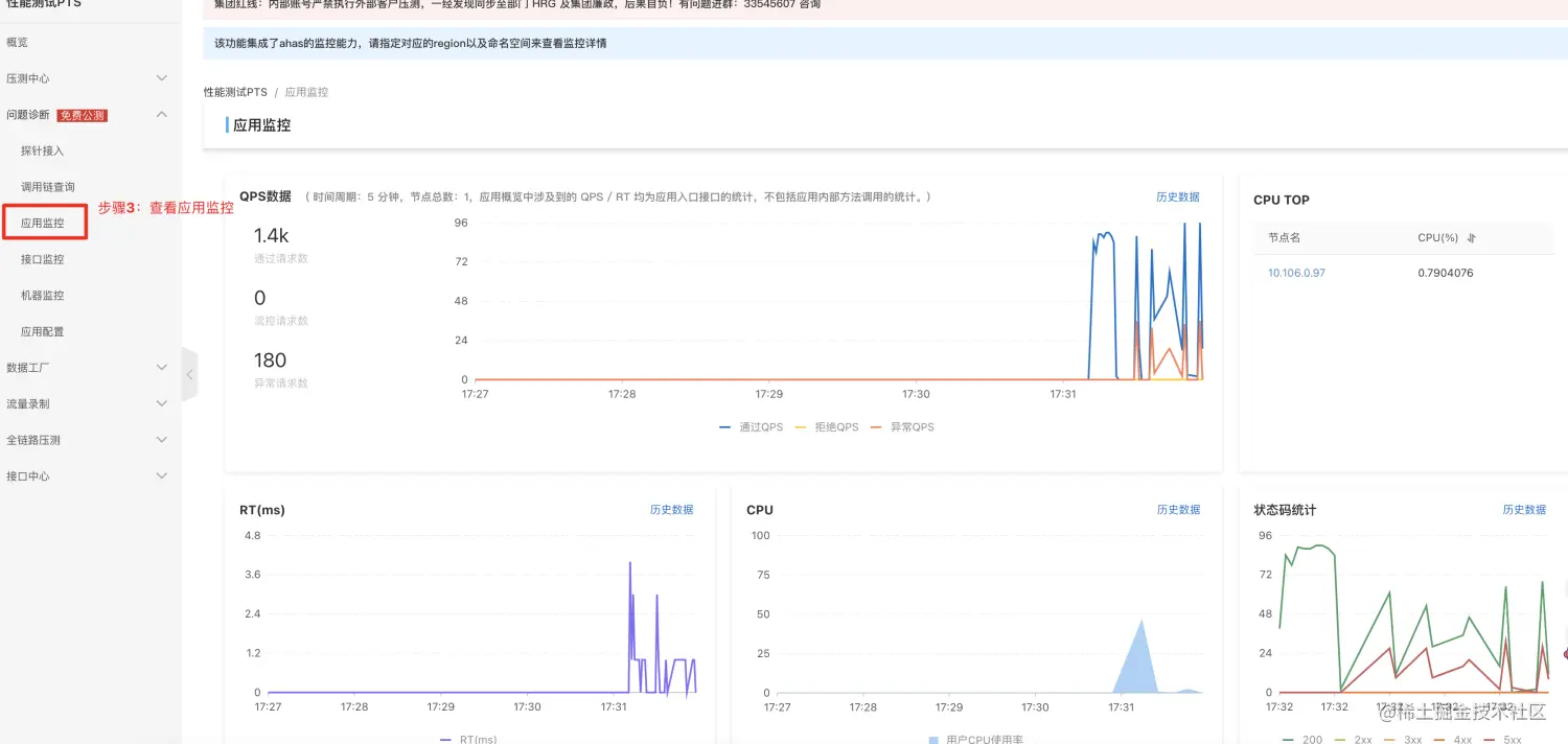 **2、集成度高:**压测、监控、问题诊断,集成在同一控制台,用户理解和操作成本相对较低。