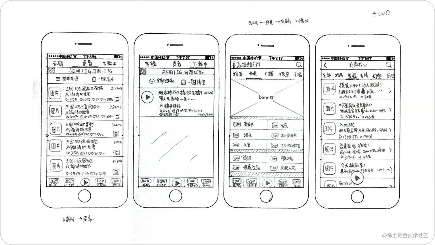 在原型设计刚开始时,手绘算是最高效的一种方式。项目前期发散思维,手绘可以帮助产品经理快速梳理思路,并且能快速验证想法可行度或重构方案,保证迭代的效率。