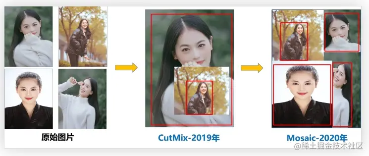 Mosaic算法在输入图片集中随机选取 4 张图片进行随机缩放,随机裁剪,随机扭曲,然后将他们拼接起来,其目的就是丰富样本数据集。
