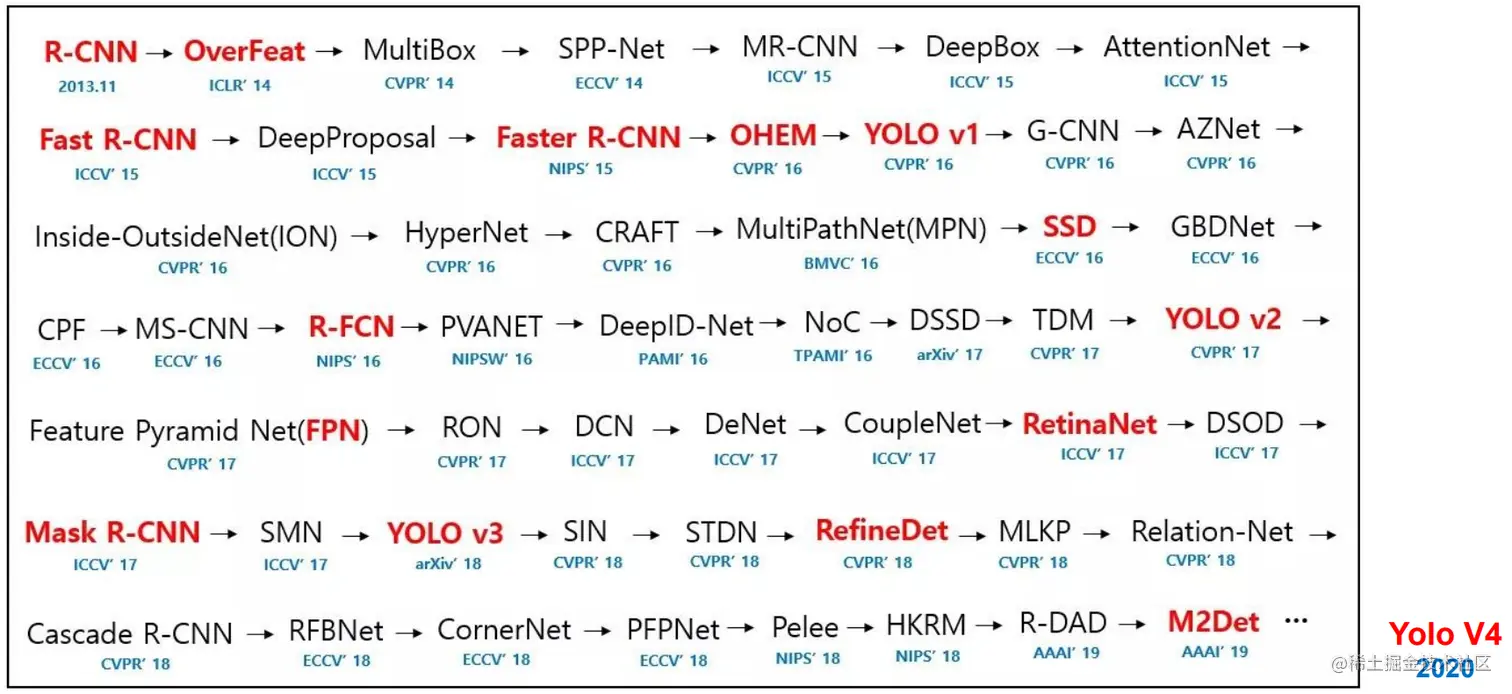 经过一系列的优化与改进,特别是2020年4月份推出的 YOLOV4,使得它在准确度方面得到了大幅度的提升,另外,它还能达到实时检测(在 GPU 加持的情况下)。